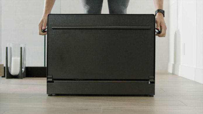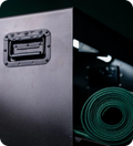 The Puttr Box is 24" W x 12" D x 18” H or 610mm W x 305mm D x 458mm H. When the carpet is rolled out the unit takes 12x2 feet of floor space. Weight is currently 30 pounds / 13.6 kg.